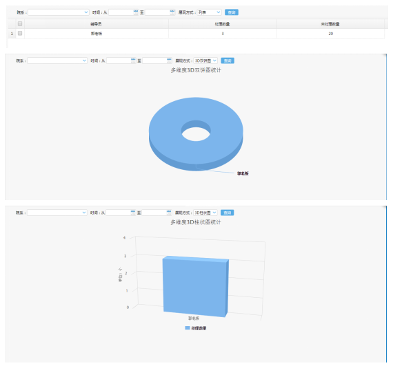 統計管理員處理違規學生的數量,以列表,3D餅狀圖,3D柱狀圖的形式進行展示