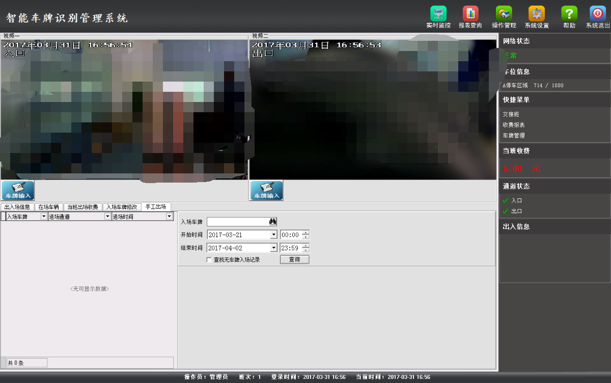 如遇到因車牌本身原因無法識別的車輛,系統(tǒng)提供人工干預(yù)手段,可由管理人員人工錄入。
