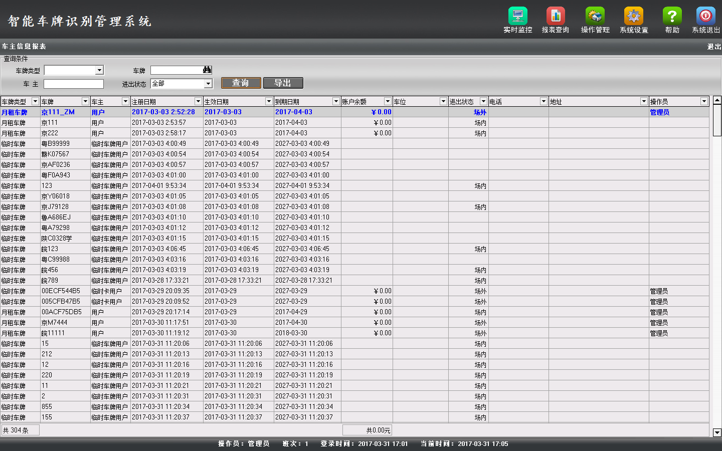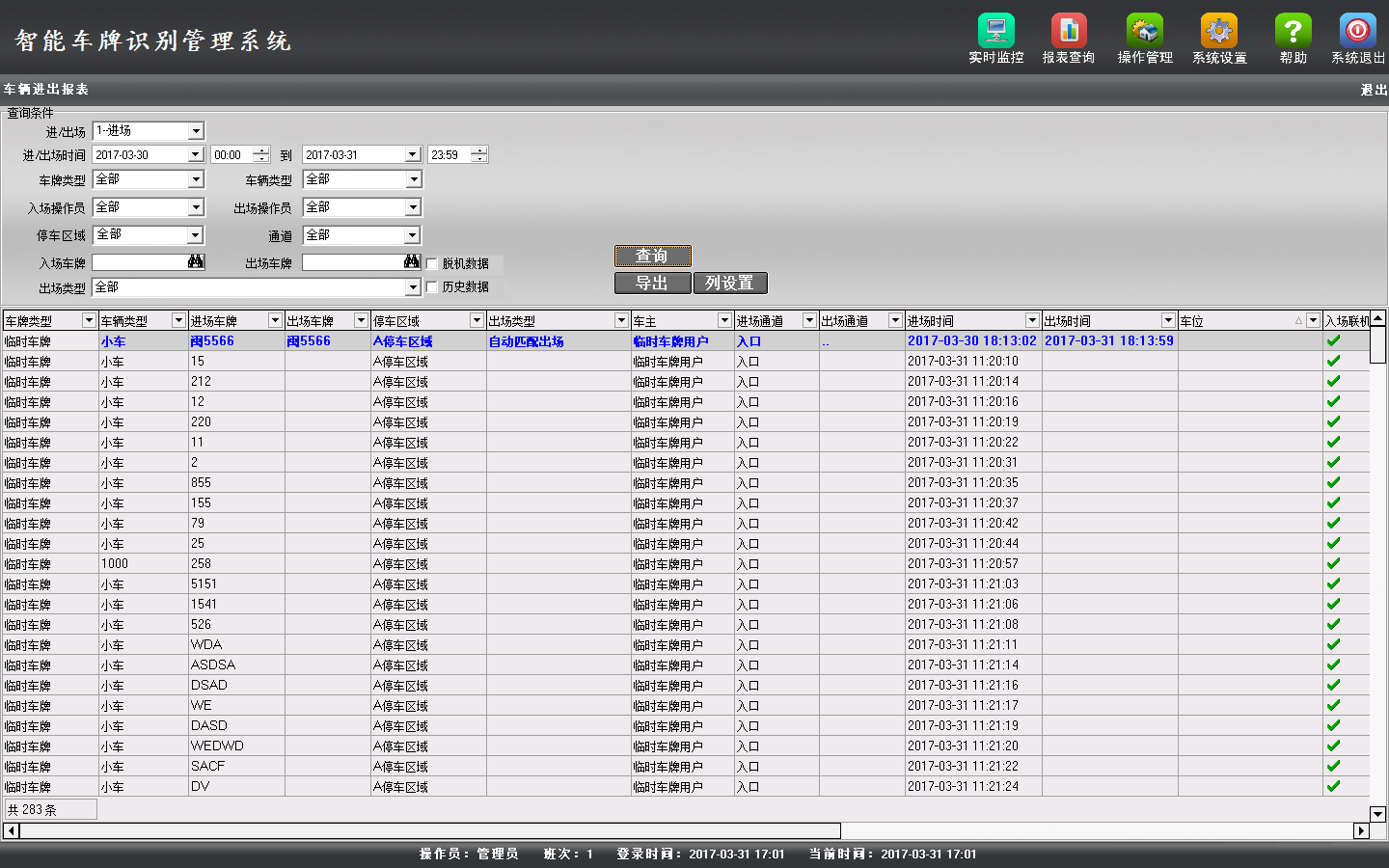 管理者可以進行內(nèi)部車輛設(shè)置,特定車輛的報警、特定車輛放行以及各種臨時或者永久參數(shù)設(shè)置。