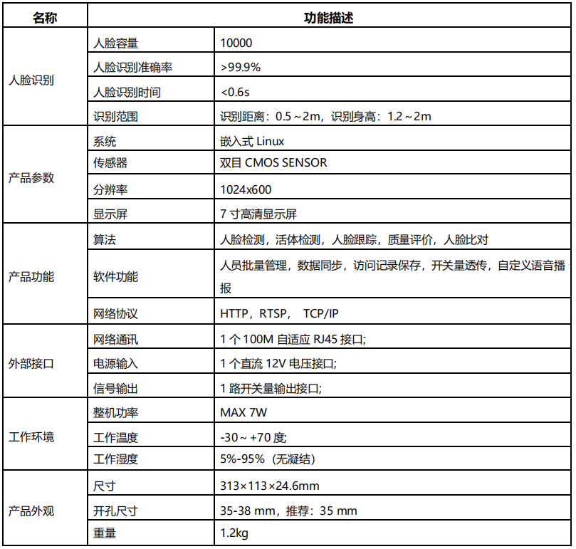 ? 支持斷網人臉識別,斷網開閘; ? 200 萬像素,1920×1080 分辨率;